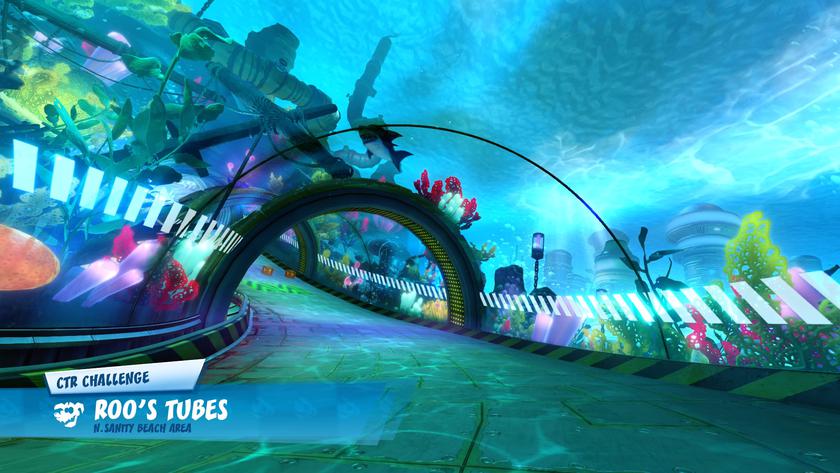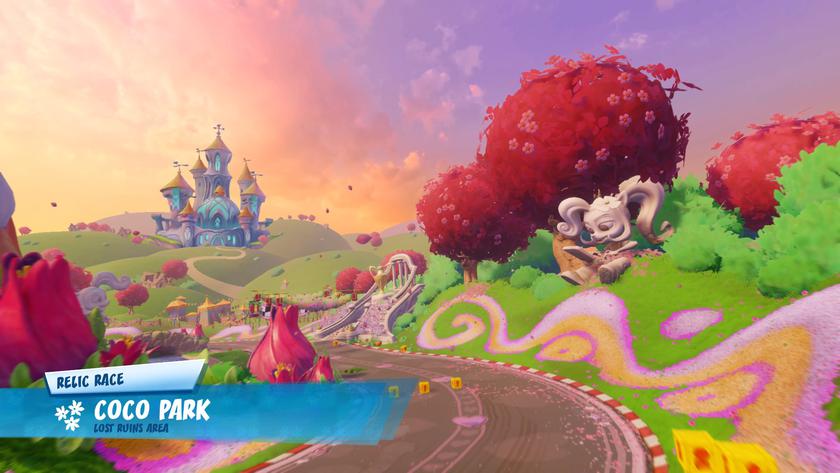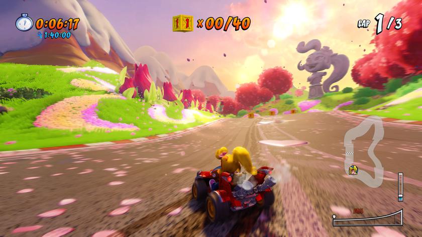 Трассы в CTR интересные и отличаются не только внешним видом, но и своей структурой. Например, есть треки с множеством крутых поворотов, а в воздушной локации, похожей на Колумбию из Bioshock Infinite, будет много обрывов и трамплинов.