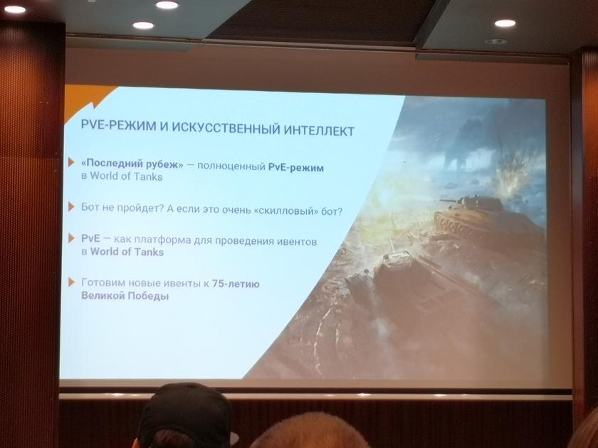 Кроме того, компания продолжает экспериментировать с разработкой искусственного интеллекта. Возможности ботов были впервые продемонстрированы во время проведения режима «Последний рубеж». С тех пор Wargaming улучшила поведение ИИ в целом, хоть и ослабила его непосредственно в самом бою, так как для многих игроков боты оказались слишком сложными. В будущем мы увидим больше PvE режимов, приуроченных к различным историческим событиям. Самое масштабное пройдёт в годовщину окончания Великой Отечественной войны.