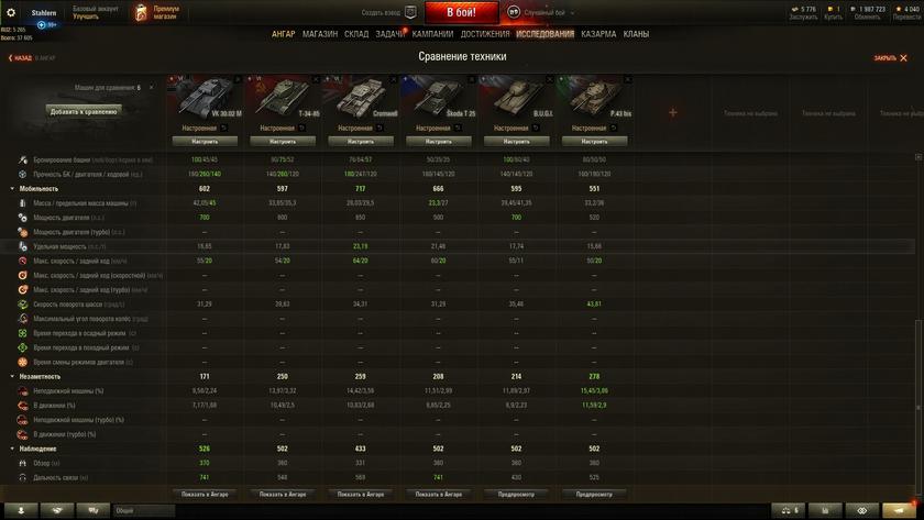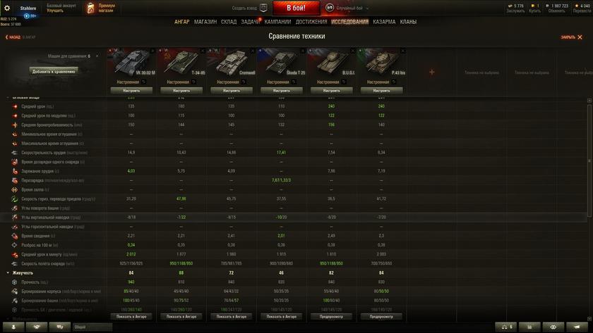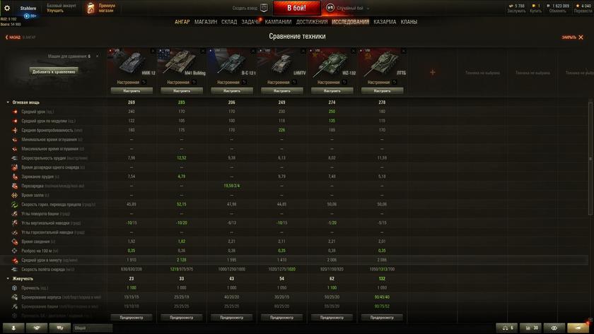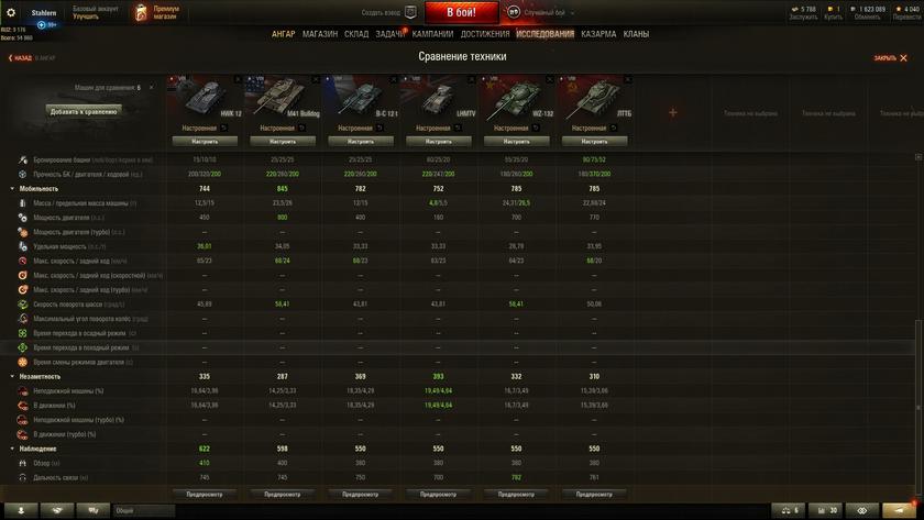 Какой же принцип выбрать? Универсального ответа нет, он зависит от машины и личных вкусов. Первое, что нужно сделать — провести анализ техники, благо, теперь в игре можно сравнивать технику через отдельное меню. Далее выделяем главные характеристики, играем несколько боёв и подбираем первый сетап.