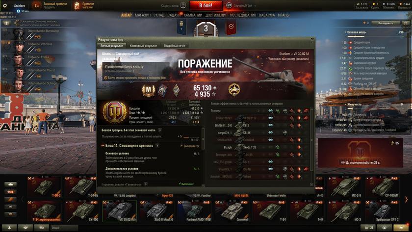 - Выводы: отличная машина для второй линии. Точное орудие с хорошим пробитием и быстрым снарядом позволяют играть от дистанции. Высокая скорость позволяет быстро менять укрытия, а броня и хорошие углы вертикальной наводки позволяют «танчить», опять же, на дистанции. На ближней дистанции VK тоже неплохо себя чувствует — таран и высокий дпм позволяют очень быстро расправиться с противником. Однако начинает сказываться сарайность, высокая критуемость и низкое бронирование бортов.