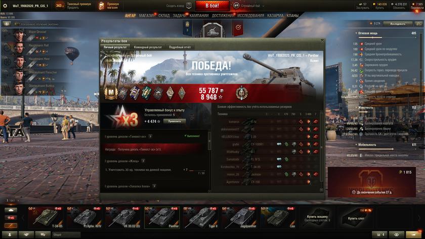 Тактика: в первой половине боя наша машина едет на переезд тяжёлых танков, стоит в кустах или поддерживает огнём союзные СТ. Во второй половине, когда лёгкие танки уже слились, мы на сэкономленных хп приступаем к более агрессивной игре, тараним среднячков, а тяжёловесов держим на дистанции. С таким универсальным билдом «недопантера» полезна на любой стадии игры и чувствует себя гораздо лучше, чем труъ Пантера 7-го уровня.