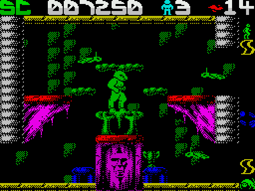 Не обошлось на ZX Spectrum и без тактического симулятора. Во времена, когда еще не было всяких Counter Strike, Metal Gear Solid и Call of Duty, мы играли в Commando. Уже тогда было понятно, что ключ к победе — это маневр и огневая поддержка. Поэтому персонаж должен был непрерывно двигаться и стрелять, обильно засыпая все гранатами. Динамика в игре очень высокая даже на первых уровнях, заминка в 1-2 секунды приводит в неминуемой гибели персонажа. Убедитесь сами: