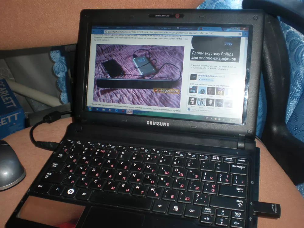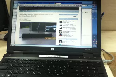 Для работы устройство получает питание исключительно через mini-USB-разъем, а потому полностью привязано к ноутбуку или зарядному устройству. Во всяком случае, если у вас нет всеядного портативного зарядного устройства. Внутри металлического корпуса располагаются пять динамиков: посередине – один овальный, диаметром до 3 дюймов – низкочастотный, и по два среднечастотных и высокочастотных, диаметром 1,25 дюйма по краям от него. Общая выходная мощность акустики поменьше, чем у многих аналогов и составляет 1,2 Вт. При умеренной громкости и высокие, и средние частоты звучат приятно и без искажений. Бас очень хорош. Конечно, стоит попытаться выкрутить звук на максимум возможностей ноутбука, как сразу появляются похрипывания и дребезжания. Слушать музыку или смотреть фильм комфортнее всего, находясь в непосредственной близости, около одного метра, и еще лучше – одному или вдвоем. В шумном месте, в большом помещении, для непоседливой компании из нескольких человек Edifier MP250 – не лучший вариант.