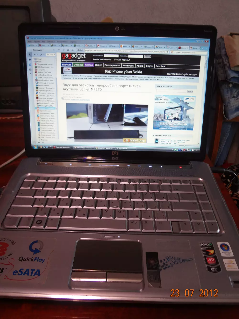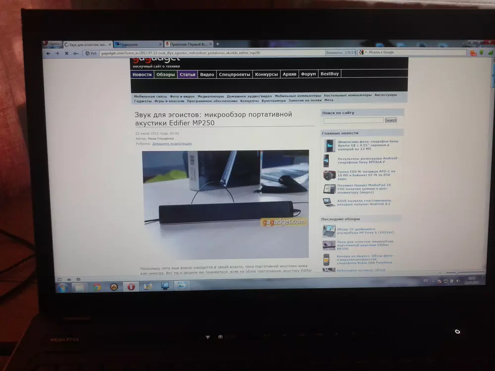 Для работы устройство получает питание исключительно через mini-USB-разъем, а потому полностью привязано к ноутбуку или зарядному устройству. Во всяком случае, если у вас нет всеядного портативного зарядного устройства. Внутри металлического корпуса располагаются пять динамиков: посередине – один овальный, диаметром до 3 дюймов – низкочастотный, и по два среднечастотных и высокочастотных, диаметром 1,25 дюйма по краям от него. Общая выходная мощность акустики поменьше, чем у многих аналогов и составляет 1,2 Вт. При умеренной громкости и высокие, и средние частоты звучат приятно и без искажений. Бас очень хорош. Конечно, стоит попытаться выкрутить звук на максимум возможностей ноутбука, как сразу появляются похрипывания и дребезжания. Слушать музыку или смотреть фильм комфортнее всего, находясь в непосредственной близости, около одного метра, и еще лучше – одному или вдвоем. В шумном месте, в большом помещении, для непоседливой компании из нескольких человек Edifier MP250 – не лучший вариант.