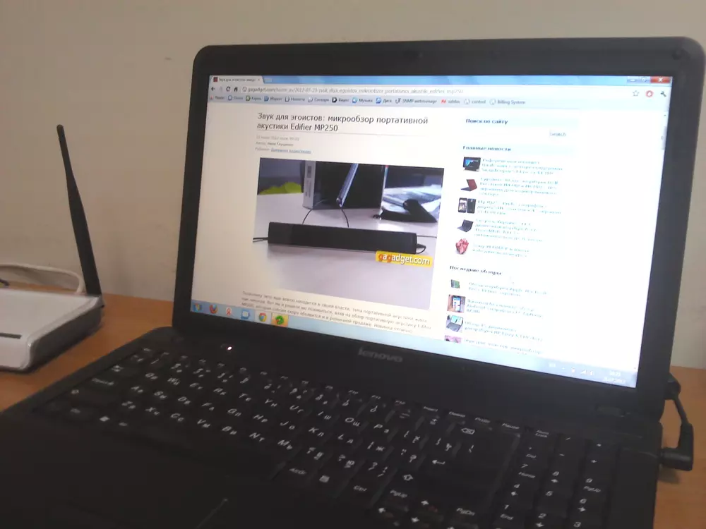 Для работы устройство получает питание исключительно через mini-USB-разъем, а потому полностью привязано к ноутбуку или зарядному устройству. Во всяком случае, если у вас нет всеядного портативного зарядного устройства. Внутри металлического корпуса располагаются пять динамиков: посередине – один овальный, диаметром до 3 дюймов – низкочастотный, и по два среднечастотных и высокочастотных, диаметром 1,25 дюйма по краям от него. Общая выходная мощность акустики поменьше, чем у многих аналогов и составляет 1,2 Вт. При умеренной громкости и высокие, и средние частоты звучат приятно и без искажений. Бас очень хорош. Конечно, стоит попытаться выкрутить звук на максимум возможностей ноутбука, как сразу появляются похрипывания и дребезжания. Слушать музыку или смотреть фильм комфортнее всего, находясь в непосредственной близости, около одного метра, и еще лучше – одному или вдвоем. В шумном месте, в большом помещении, для непоседливой компании из нескольких человек Edifier MP250 – не лучший вариант.