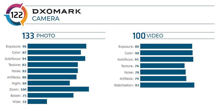 В DxOMark записали в плюсы камеры высокую детализацию, ночной режим, эффекты боке, зум и точный подсчёт значения экспозиции, при съемке видео — корректный просчёт экспозиции, правильную цветовую гамму, хорошую стабилизацию.