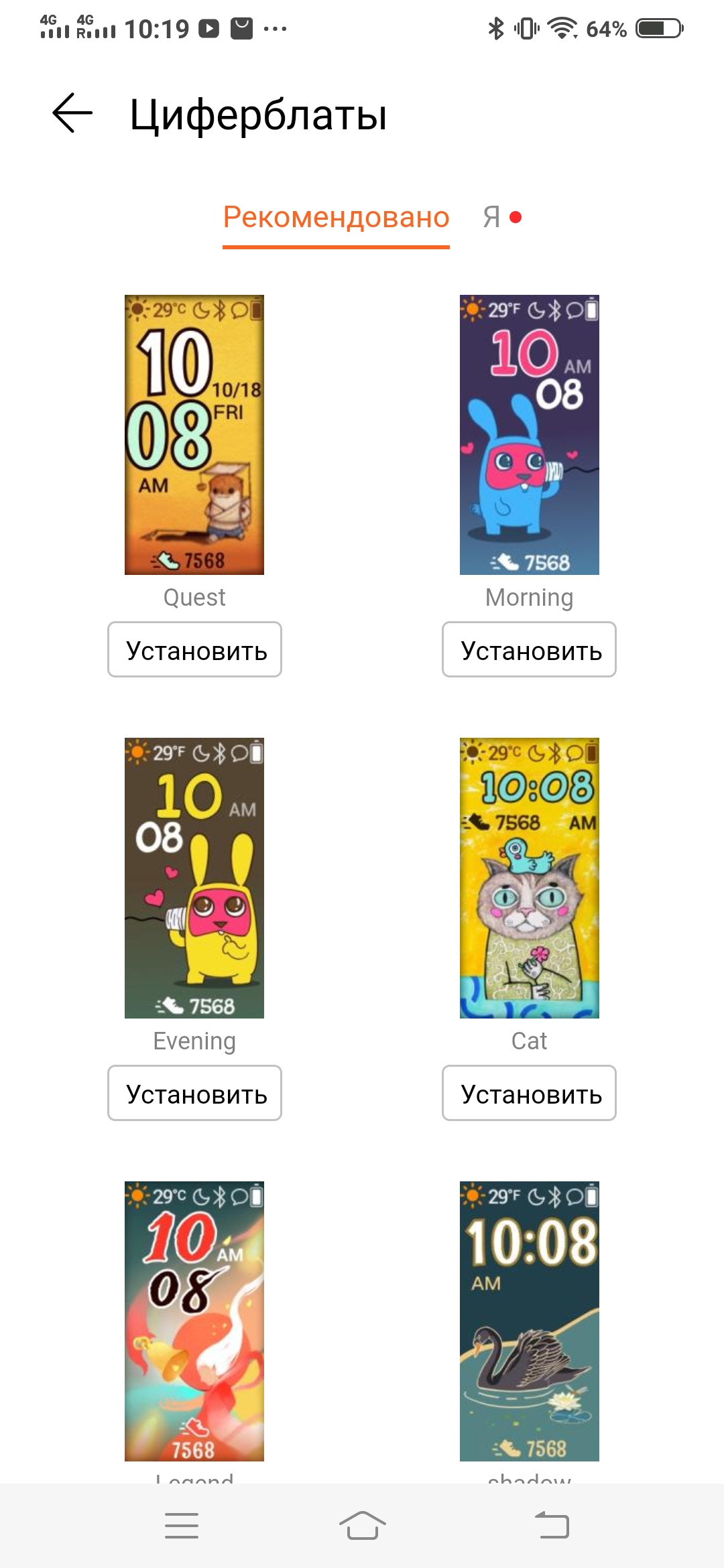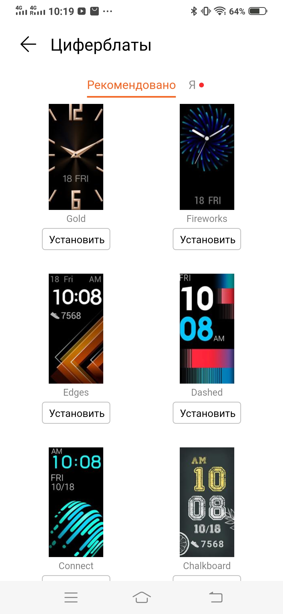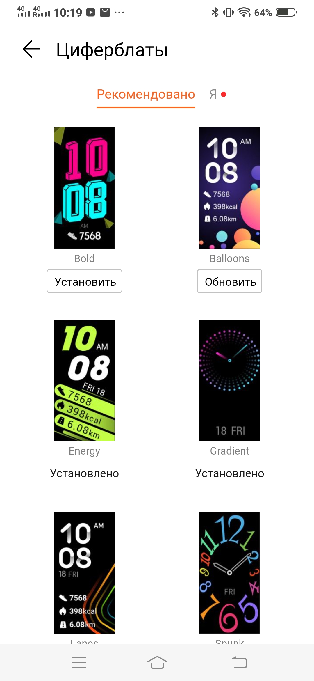 Цвета сочные, циферблатов в меню браслета восемь штук, есть те, что только время показывают, есть - шаги, потраченные во время активности калории, расстояние. Но если этого мало, в приложении - еще несколько десятков, хотя они скорее про дизайн и фан, чем про утилитарность.