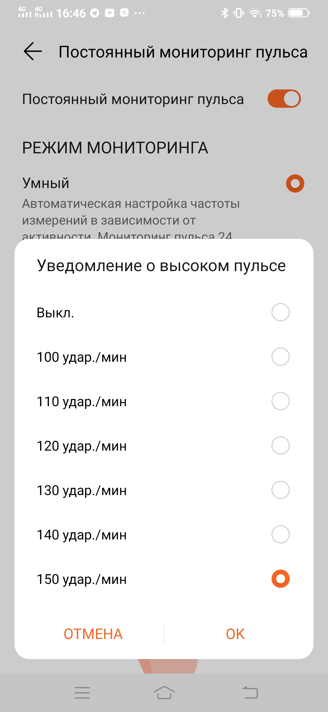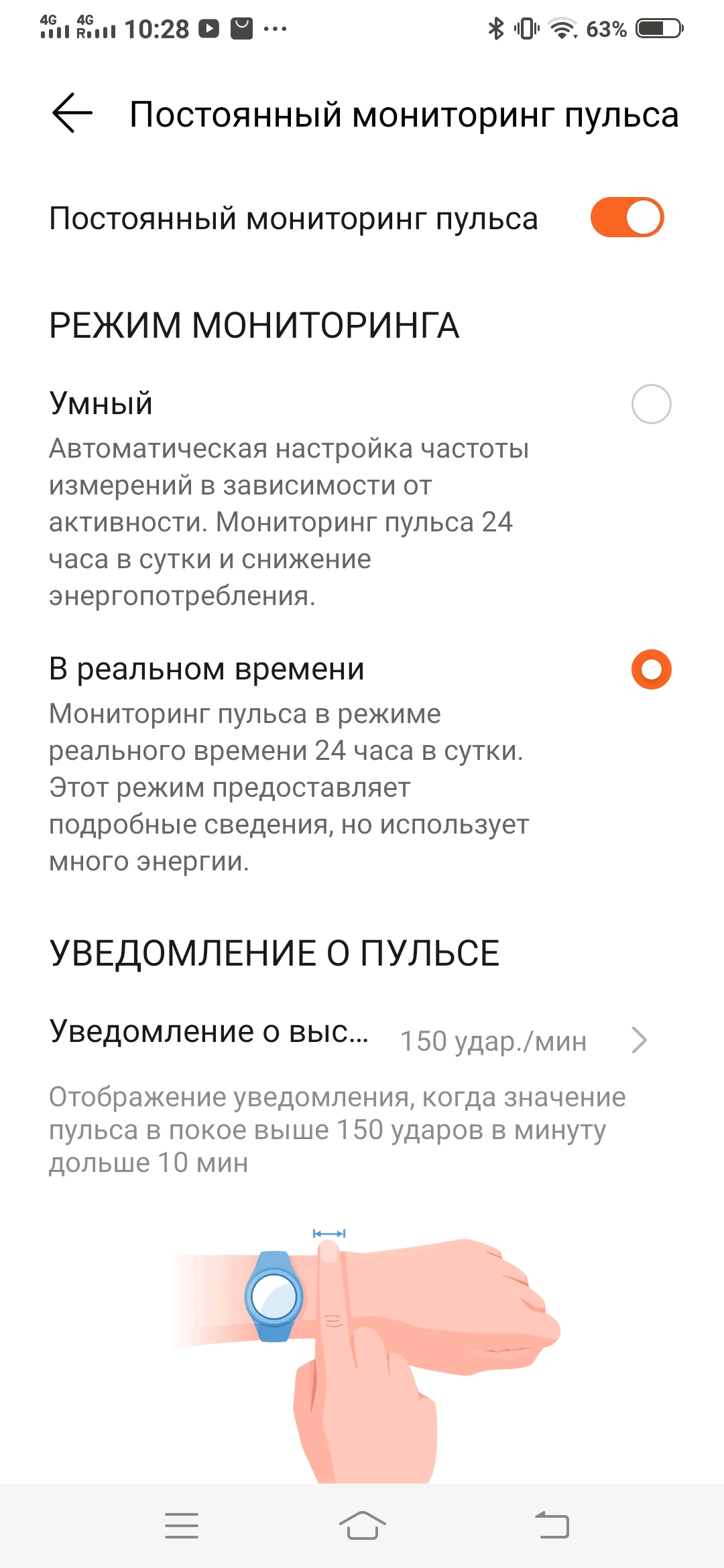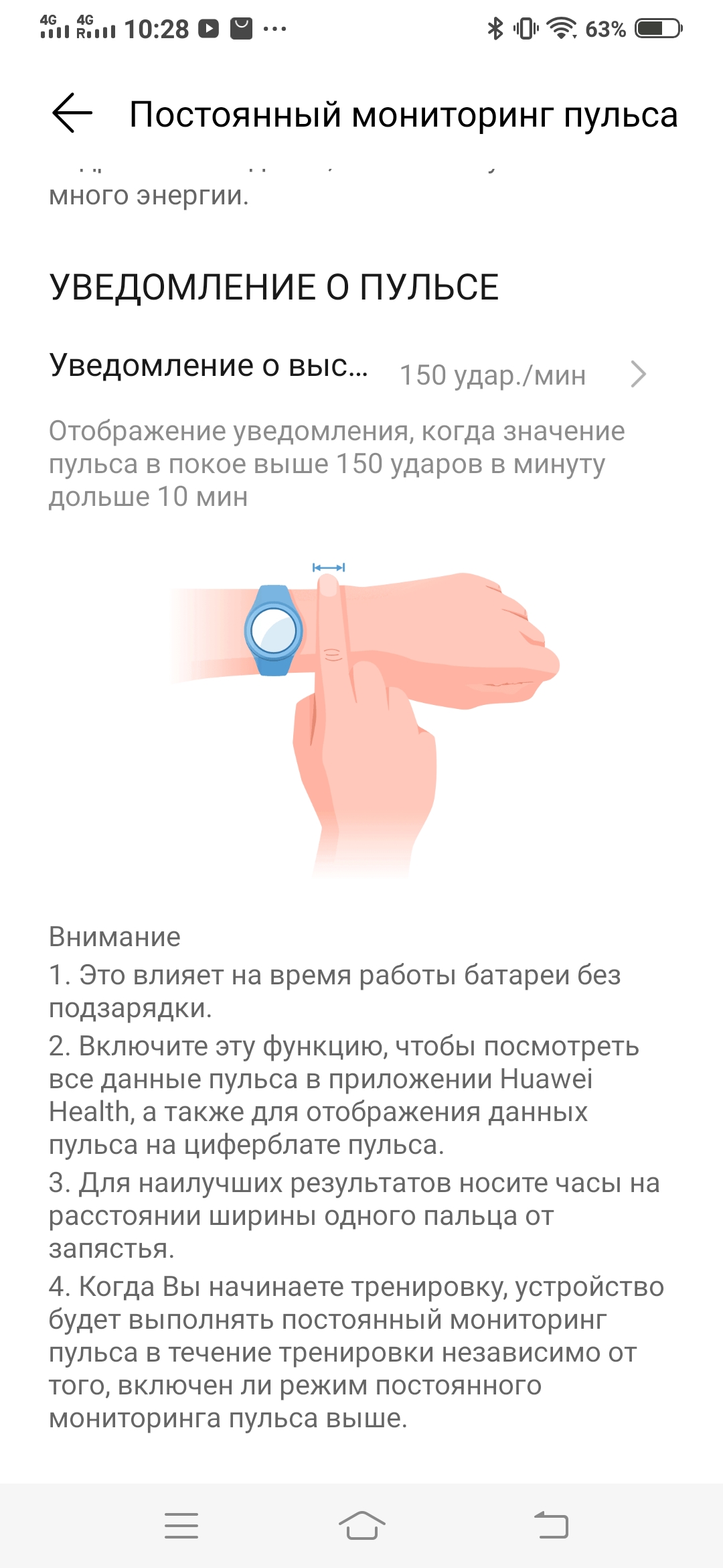 Основное отличие этой модели от предыдущей - наличие функции измерения кислорода в крови. Одновременно с кислородом измеряется и пульс. Для кислорода норма от 90% до 100%, если меньше - стоит подвигаться, а если меньше 70% - обратиться к врачу. Измерение запускается на устройстве, в меню приложения эти данные не найти. Насколько я понимаю, статистика по ним не ведется. Измерения в автоматическом режиме тоже нет.