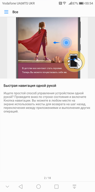 В смартфоне установлен свежий топовый восьмиядерный 10-нанометровый процессор HiSilicon Kirin 970 с тактовой частотой до 2.36 ГГц сопроцессором i7, NPU (Neural-network Processing Unit) и свежей графикой Mali-G72 MP12. Его дополняют внушительные 6 ГБ оперативной памяти и 128 ГБ встроенной. Довольно часто бывает так, что не все приложения и игры работают как надо с новыми чипсетами, тем более, что соотношение сторон экрана также нестандартное. Плюс собственная оболочка и так далее. Нюансов может быть много, но в данном случае всё оказалось очень даже хорошо: оболочка и все приложения работают очень быстро и без каких-либо глюков. Растягиваются на весь экран без проблем прекрасно себя чувствуют в таком виде. В настройках есть отдельный список, в котором самостоятельно можно выбрать, какие из приложений будут во весь экран, а какие нет:
