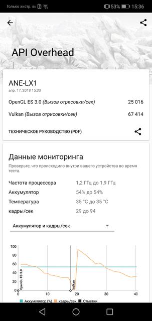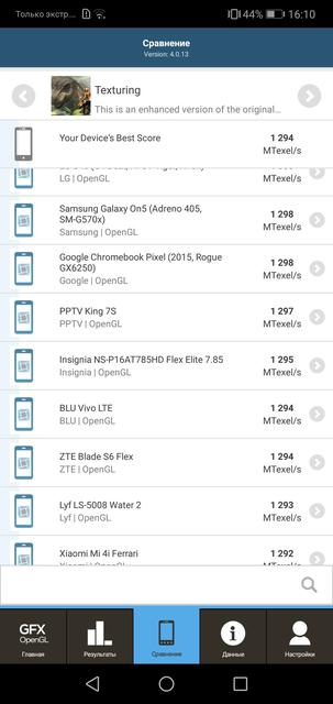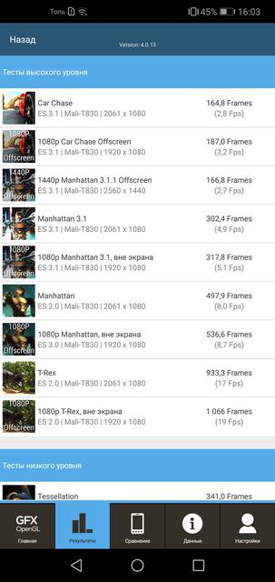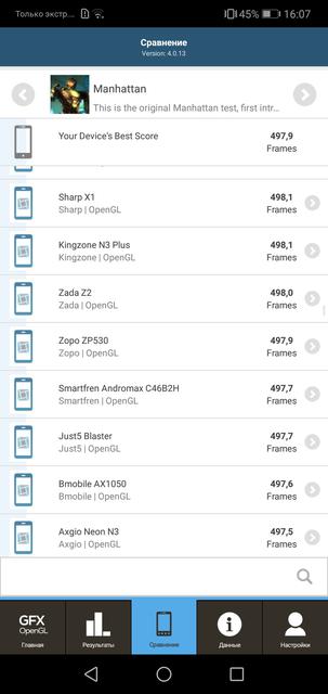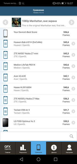 Внутри установлен 16-нанометровый восьмиядерный процессор HiSilicon Kirin 659, в него входят два блока по 4 ядра ARM Cortex-A53, максимальная тактовая частота — 2.36 ГГц, графика — Mali-T830MP2. Оперативной памяти — 4 ГБ типа LPDDR3, встроенной — 64 ГБ, вместо второй SIM-карты можно установить MicroSD. Аналогичные конфигурации мы уже видели в Huawei Nova 2 и Mate 10 Lite. Такого железа достаточно для шустрой и стабильной работы оболочки и приложений. Но, традиционно, графика Mali уступает Adreno и она — не лучший выбор для геймеров. Большинство игр идут без проблем, но на низких настройках графики. К примеру, PUBG и NFS: No Limits, явно притормаживал только XCOM: Enemy Within: