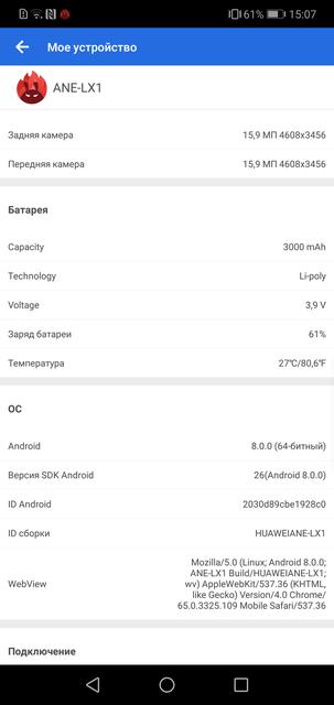 | Операционная система | Android 8.0 Oreo + EMUI 8.0 |