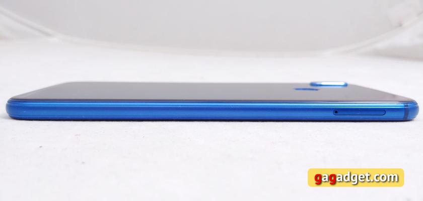 Смартфон выпускается в чёрном, розовом и синем цветах. Соответствующего цвета и рамка, и задняя панель смартфона. Синий вариант выглядит интереснее, чем заезженные чёрные/серебристые/золотистые смартфоны. Задняя панель красиво бликует под лучами света. Такое решение имеет и привычные недостатки в виде отпечатков пальцев и повышенной хрупкости: