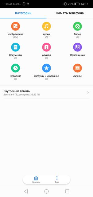 Встроенной памяти в смартфоне 64 ГБ, что очень хорошо, как для смартфона среднего ценового диапазона. Кому мало — вместо второй SIM-карты можно установить MicroSD. Очень порадовало наличие двухдиапазонного 2.4/5 ГГц Wi-Fi a/b/g/n/ac и полноценного NFC. Раньше модели среднего ценового диапазона у Huawei не могли этим похвастаться. Есть Bluetooth 4.2 LE и поддерживаются кодеки aptX, aptX HD для более качественной передачи звука на беспроводные наушники. Разъём 3.5-мм тоже оставили, так что любителям слушать музыку со смартфона будет комфортно. Сам плеер и настройки стандартны для Huawei (да и любого другого среднестатистического плеера на Android):