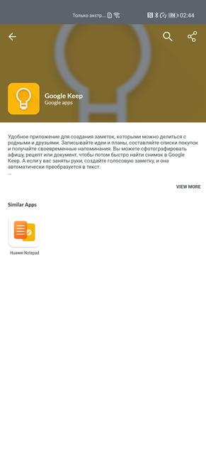 Интересная и полезная штука — MoreApps. Она позволяет найти откуда можно установить нужное приложение, либо предлагает аналоги. К примеру, вместо Google Keep предлагается приложение для заметок Huawei Notepad (предустановлено), а при поиске Instagram — отсылает на веб-версию или в приложение APKPure, откуда его можно установить:
