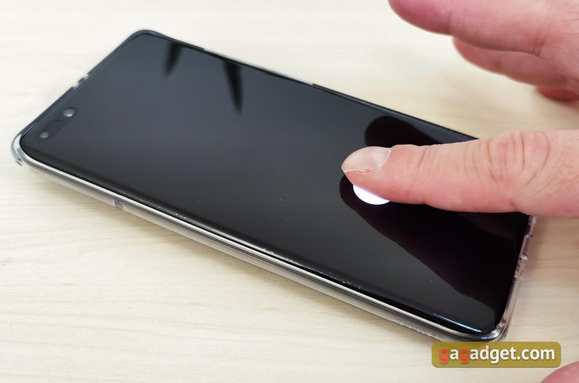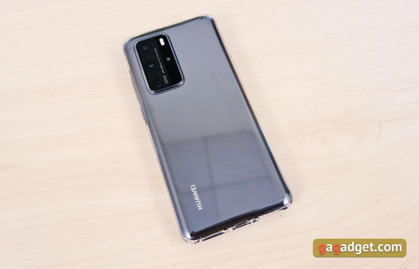 Основной упор компания традиционно сделала на камеры. Как в P30 Pro, камера Huawei P40 Pro состоит из четырёх камер, которые созданы совместно с Leica, камеру на этот раз назвали Leica Ultra Vision. Некоторые наработки и идеи, включая необычную структуру фильтра RYYB и перископическую камеру, получили своё логичное развитие. Основная камера — 50-мегапиксельная камера Ultra Vision с 1/1,28-дюймовым размером матрицы (эквивалент 27 мм, диафрагма f/1,9, OIS, схема RYYB) и автофокусом Octa Phase Detection, её дополняет ультраширокоугольная 40-мегапиксельная камера Cine с 1/1,54-дюймовым сенсором, 18 мм ЭФР, диафрагмой f/1.8, перископический телеобъектив SuperSensing на 12 МП с 5х оптическим зумом, ЭФР 125 мм, диафрагма f/3.4, OIS, схема RYYB. Четвёрный модуль — TOF 3D-камера для измерения расстояния до объектов. Помимо очевидных и уже привычных функций типа ночного режима съёмки, размытия фона и портретного режима, есть "живое фото", замедленная съемка до 7680 fps (256х) в 720p и до 960 fps (32х) в 1080p, видео в 4K/60 fps со стабилизацией, сохранение фото в RAW, зум до 50х и так далее. Фронталка тоже интересная: двойная, с автофокусом и ИК-датчиком для определения владельца в темноте и жестов в воздухе. Экран назвали Overflow, он имеет необычное разрешение 2640х1200 и частоту обновления 90 Гц. Внутри — топовый 7-нм восьмиядерный процессор Kirin 990 5G, 8 ГБ оперативной и 256 ГБ встроенной памяти. Формально расширить можно, но только если найдёте где-нибудь карту стандарта NM. Сканер отпечатка пальцев оптический и расположен под экраном. Питается смартфон от аккумулятора на 4200 мАч. Поддерживается фирменная быстрая зарядка по проводу Huawei SuperCharge на 40 Вт и беспроводная зарядка на 27 Вт в обе стороны. Корпус защищён по стандарту IP68. Работает смартфон на Android 10 AOSP с оболочкой EMUI 10 с собственными Huawei Mobile Services, без сервисов Google.