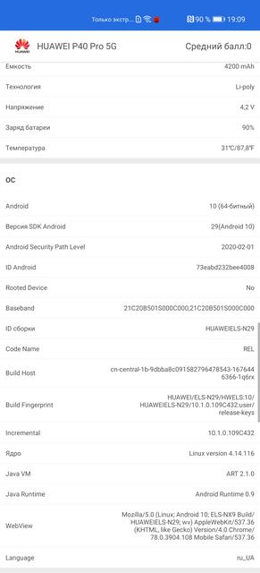 | Операционная система | Android 10.0 (AOSP + HMS), EMUI 10 |