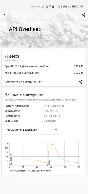 Отдельно стоит похвалить Huawei за стабильность работы процессора. В стресс-тесте CPU Throttling Test он показал себя великолепно: все 15 минут процессор чувствует себя отлично, не перегревается и не троттлит. И, нужно отметить, это в производительном режиме. Корпус смартфона под нагрузкой также практически не греется.