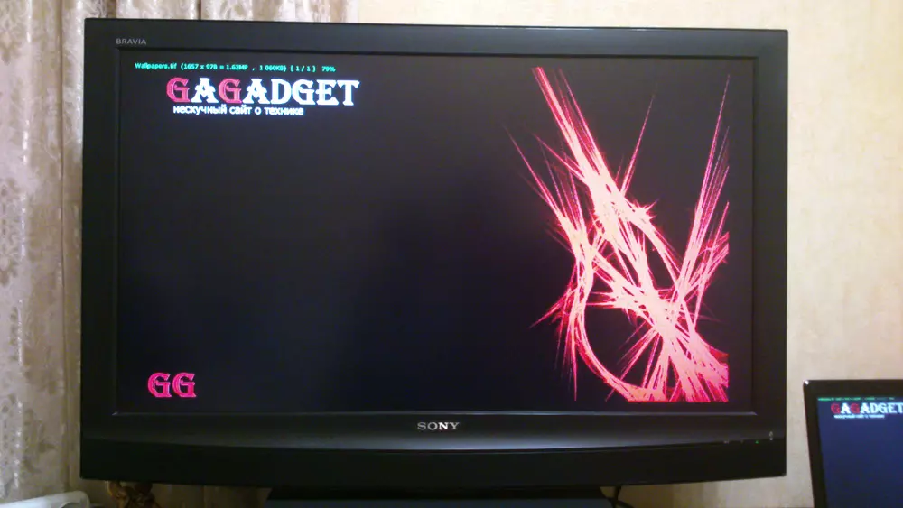Мой телевизор. Изображение переведено с ноутбука по HDMI, что доказует его наличее. Фото делал самостоятельно. А плеер по настоящему мультимедийная игрушка!