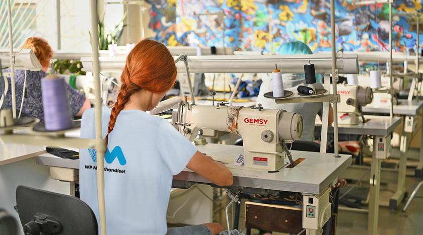 Так что производство пришлось создавать собственноручно. Мы создали компанию WP Merchandise!, через несколько итераций построили фабрику в Киеве в районе метро Почайна. Сейчас над продукцией работает 6 дизайнеров, 30 швей, 20 оформителей, 6 закройщиков и десятки других профильных специалистов.