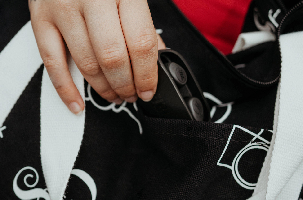 быстрого доступа к наушникам и позволяет не вытаскивать коробку из кармана для