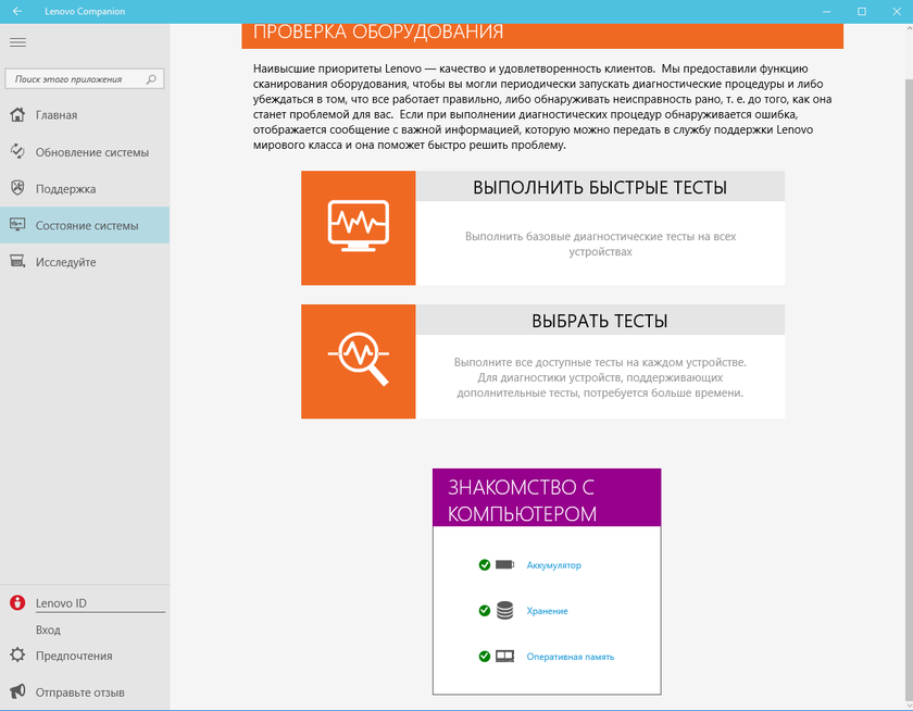 Предустановленного ПО на ноутбуке минимум: стандартные утилиты Lenovo Companion и Lenovo Settings: