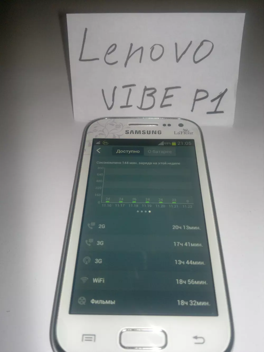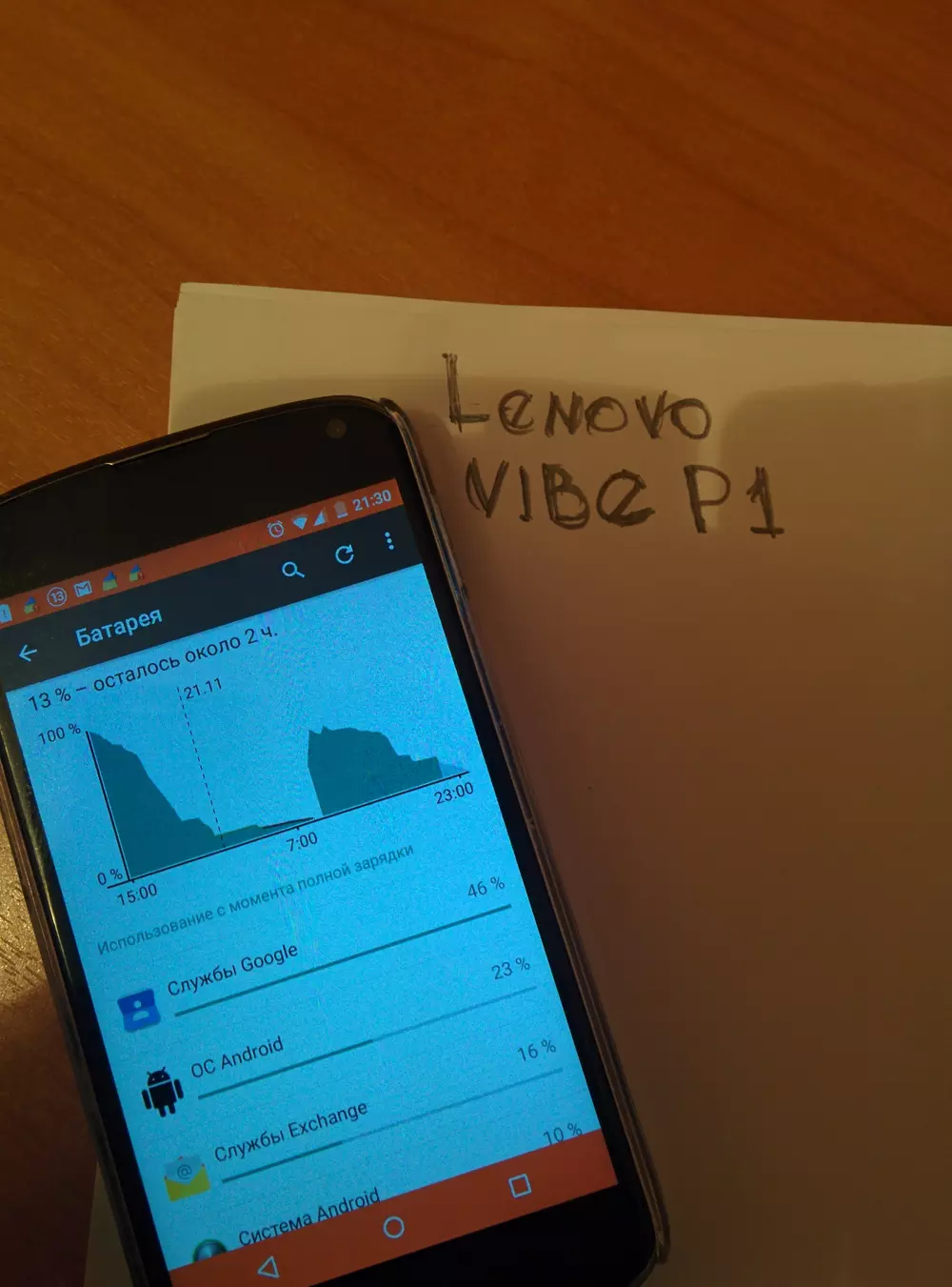 Уважаемые читатели! У вас есть возможность выиграть смартфон Lenovo Vibe P1, если вы примете участие в нашем конкурсе и сделаете снимок своего смартфона в режиме демонстрации графика разрядки аккумулятора вместе с надписью «Lenovo VIBE P1», сделанной любым удобным способом, кроме графического редактора — примеры таких снимков ниже.