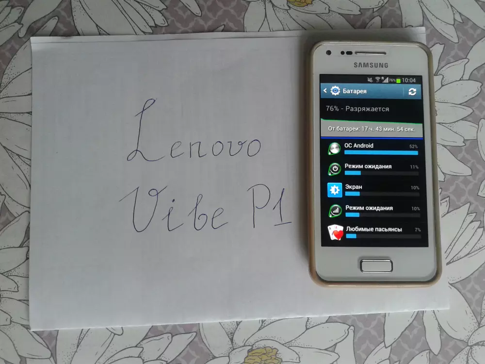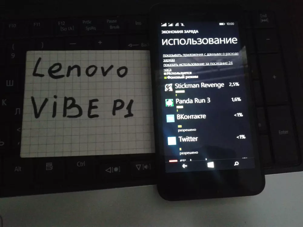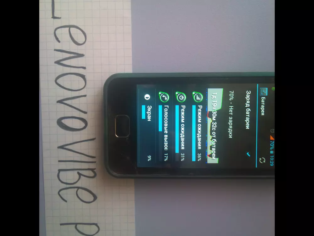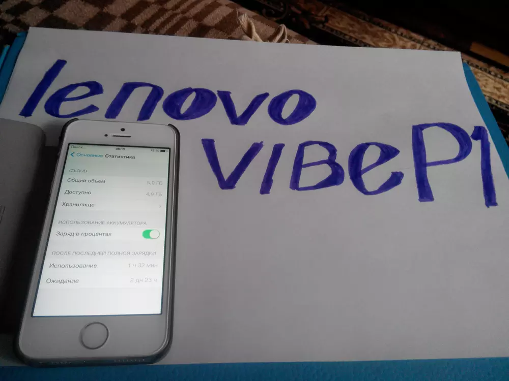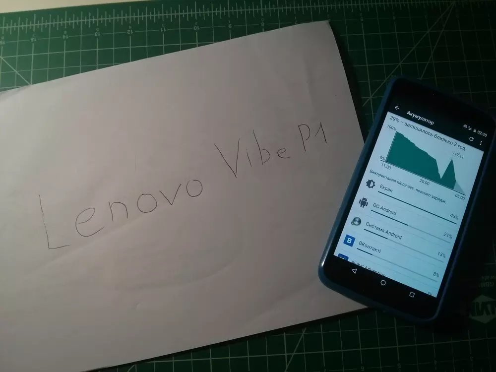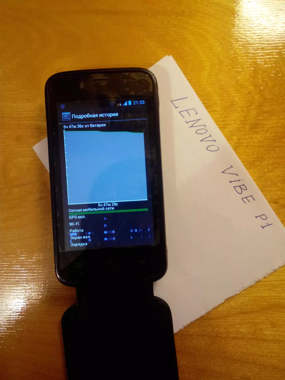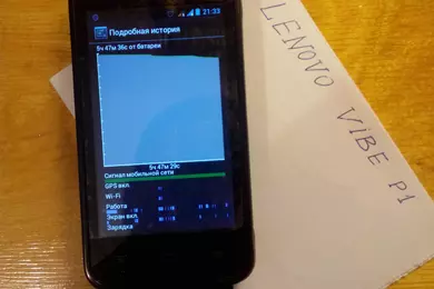 Уважаемые читатели! У вас есть возможность выиграть смартфон Lenovo Vibe P1, если вы примете участие в нашем конкурсе и сделаете снимок своего смартфона в режиме демонстрации графика разрядки аккумулятора вместе с надписью «Lenovo VIBE P1», сделанной любым удобным способом, кроме графического редактора — примеры таких снимков ниже.