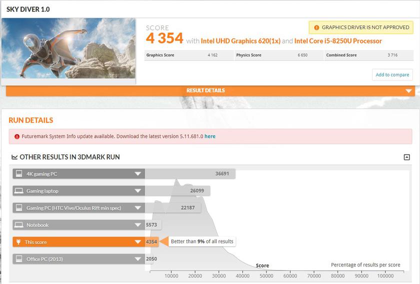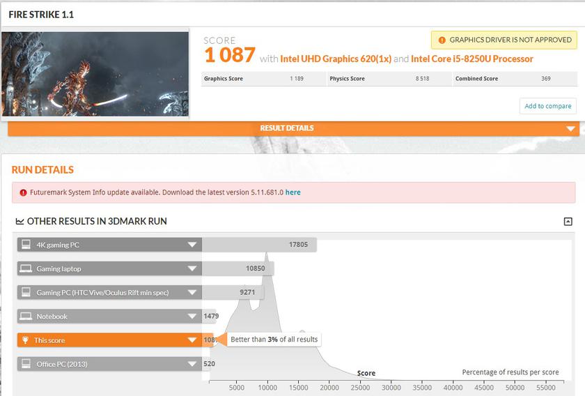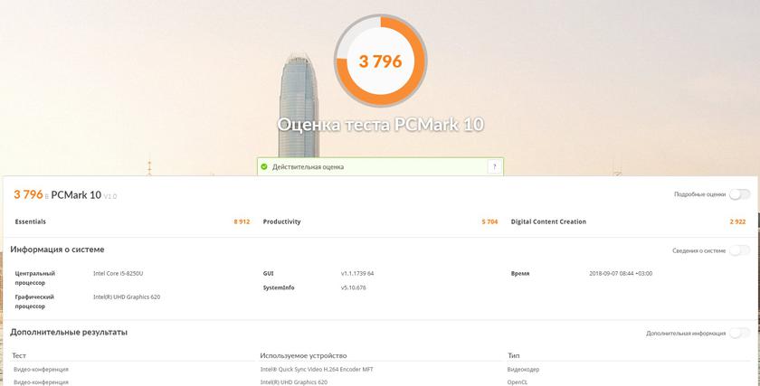 Внутри установлено 8 ГБ быстрой оперативной памяти DDR4-2400. Беспроводные интерфейсы: Wi-Fi 802.11 AC (2x2) и Bluetooth. Такой конфигурации достаточно для комфортной работы любых офисных приложений плюс фоторедакторов. Результаты бенчмарков: