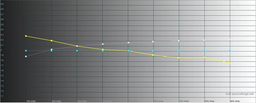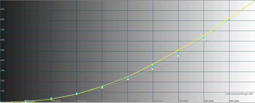 Запас яркости невысокий: 274.646 кд/м2, яркость черного поля — 0.452 кд/м2, как и не лучший показатель контрастности — 608:1. Но калибровка вполне хороша, особенно учитывая, что это не флагманская модель: