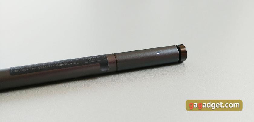Крышка поворачивается на 360°, так что можно использовать в разных вариациях. Пока действительно мне пригодился режим "тента" в самолёте для просмотра фильмов, планшетному режиму практического применения пока не нашёл. Шарнир надёжно фиксирует экран в нужном положении, но одной рукой открыть не получится. Для крепления стилуса используется пластиковое крепление, которое вставляется в USB. Стилус Active Pen 2 разработан совместно с Wacom. По толщине и размерам похож на привычную ручку. Он распознаёт до 4096 уровней нажатия и наклон. Для подключения используется Bluetooth. На корпусе есть три кнопки: две основных под указательным пальцем и одна дополнительная сверху. Питается от одной батарейки АААА и двух SR527SW (есть в комплекте). Не умею рисовать, так что сложно оценить стилус с этой точки зрения, но для заметок или работы с Photoshop он отлично подошёл: