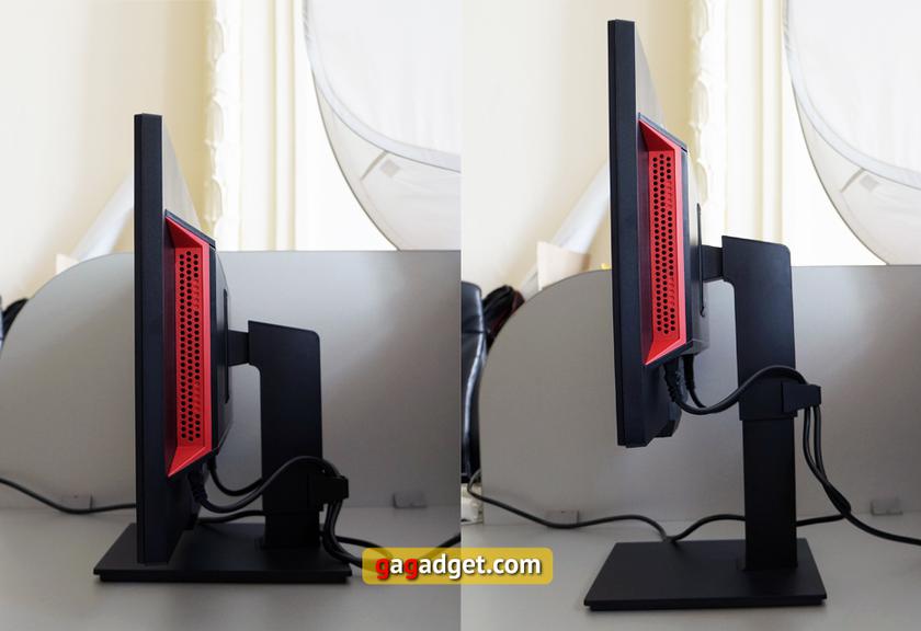 Единственное, что во внешнем виде намекает на игровую направленность — это красные решетки по бокам заднего блока. Они с перфорацией для охлаждения внутренностей монитора: