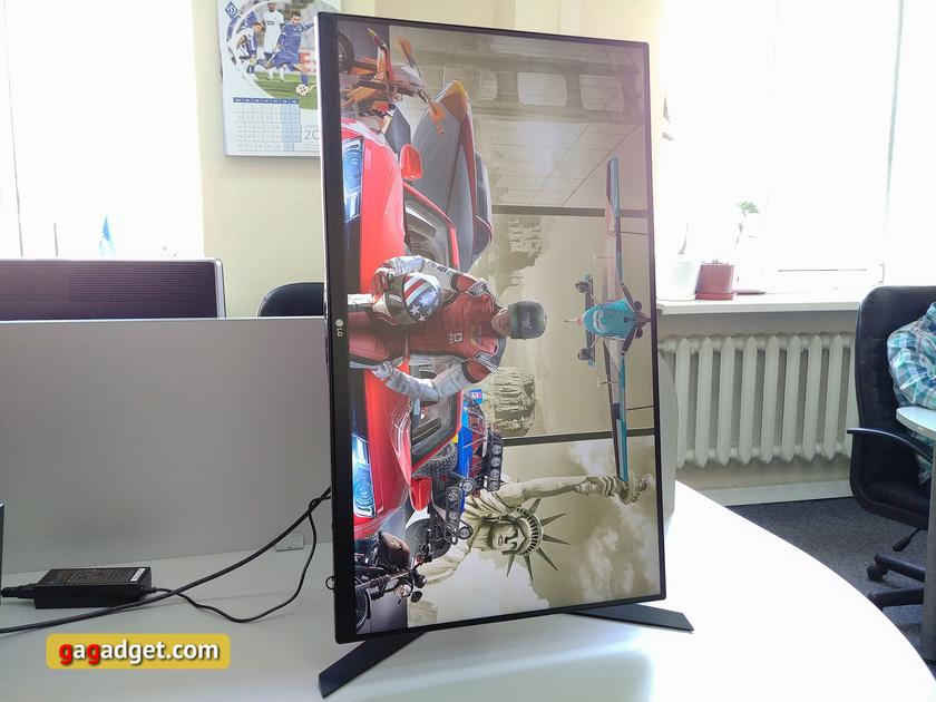 Есть возможность повернуть в портретный режим на 90° (Pivot):