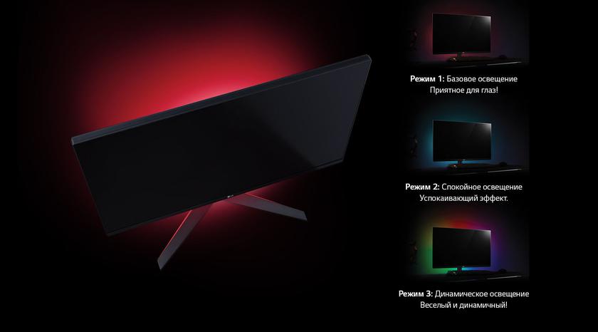 Подсветка яркая, есть разные цвета и режимы, начиная с динамической смены (радуга) и заканчивая "дневным светом" или "расслабляющим режимом":