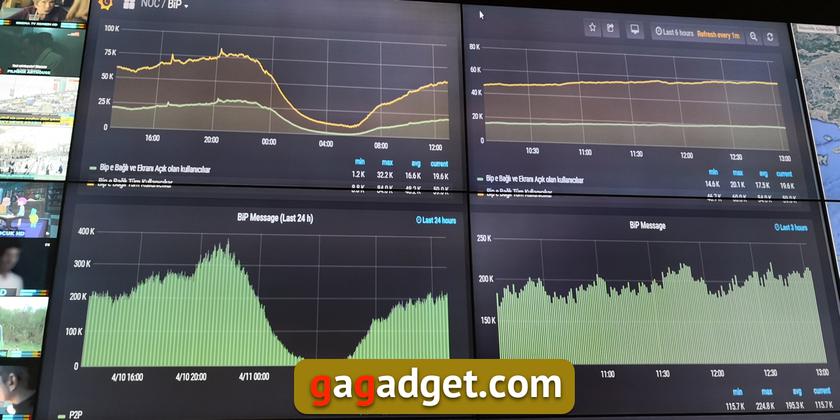 То есть оператор не просто предоставляет услуги мобильных звонков и мобильного интернета (чего тоже там есть в больших объемах), а еще и создает новые сервисы, активно использующие ресурсы оператора. Это и традиционные для игроков рынка телекоммуникаций услуги телевидения, и сервис потоковой музыки Fizy, и мобильное телевидение TV+, и мессенджер BiP, который действительно популярен в Турции — статистика оператора в режиме реального времени отображает сотни тысяч сообщений в час:
