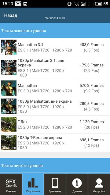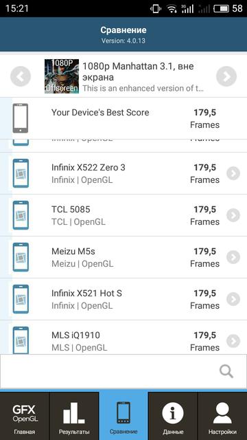 Я уже писал выше, M3s и M5 работают на MediaTek MT6750 с восемью ядрами в двух кластерах: 4хARM Cortex-A53 по 1.5 ГГц и 4хARM Cortex-A53 1.0 ГГц и графикой ARM Mali-T860. В новом же Meizu M5s установлен MediaTek MT6753 с аналогичной конфигурацией ядер, но уменьшенной до 1.3 ГГц максимальной тактовой частотой и более скромным видеоускорителем Mali-T720, так что производительность в играх и синтетических тестах будет ниже, чем у предшественника. Оперативной памяти — 3 ГБ, используется LPDDR3. У нас на обзоре был тестовый образец с Daily-прошивкой, которая не позволяет штатными методами установить большинство бенчмарков, так что досконально оценить производительность не удалось: