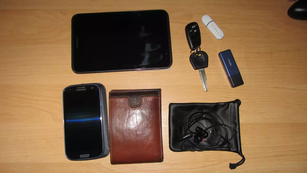 То что есть всегда: - электронная книжка (в транспорте то что надо :)) - телефон рабочий - телефон служебный - флешка (для документов) - платежная карта в виде USB-флешки (для тестов) - ключи