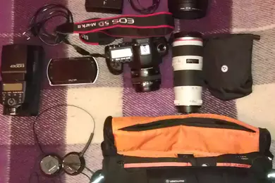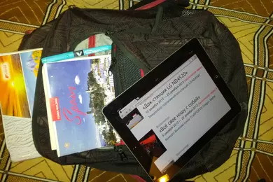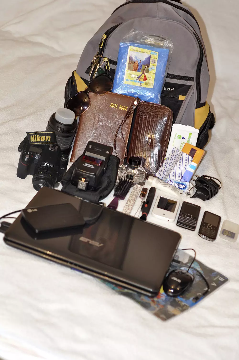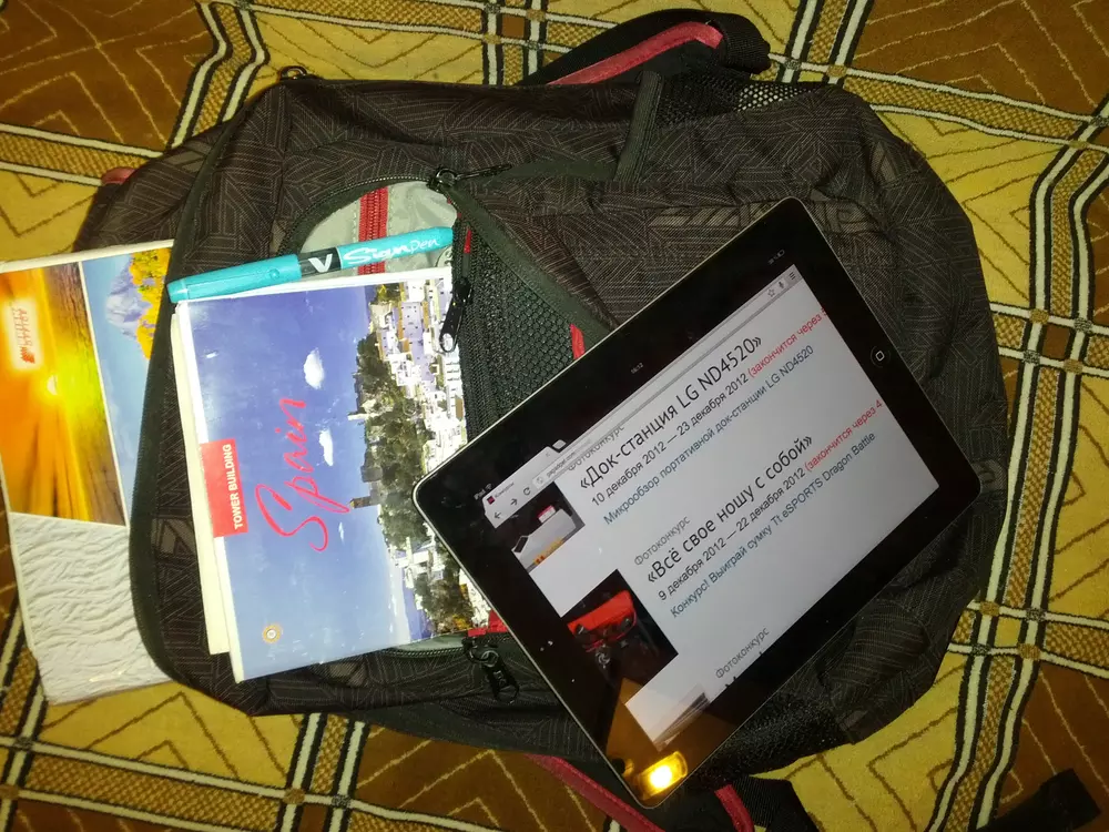 Вот такой женский мини-наборчик обычно меня везде сопровождает :) Единственное, не всегда ношу ноутбук с собой и в кадр не попал отражатель, зарядные устройства и косметичка)))) Вот так и "качаюсь" частенько с рюкзачком