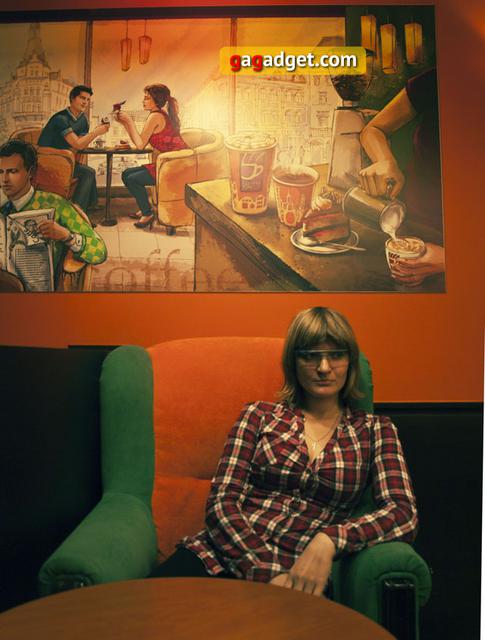 Люди обособляются. Они уходят от прямых взглядов друг на друга. Они опускают глаза на экраны смартфонов, планшетов и прочих центров поглощения внимания, почти надежных защитников от жестокого окружения. Картинка внутри гаджета становится основной, картинка окружающей среды — второстепенной… Тогда почему бы не расположить картинку из гаджета более…более приемлемо с анатомической точки зрения что ли? Раз твои глаза все равно устремлены в гаджет, может, пусть гаджет движется вместе с глазами? О разработке нательного компьютера Google Glass, оригинального устройства дополненной реальности в форме очков, прогрессивное человечество услышало еще в прошлом году. Часть прогрессивного человечества, обожающая технические новинки, с нетерпением ждет гаджет, помещающий важную информацию прямо в поле зрения пользователя и практически незаметно для окружающих. Вспоминая при этом Терминатора и прочих кумиров детства. В редакции gg этот уникальный приборчик пробыл совсем недолго, но первые впечатления о нем у нас успели сложиться.