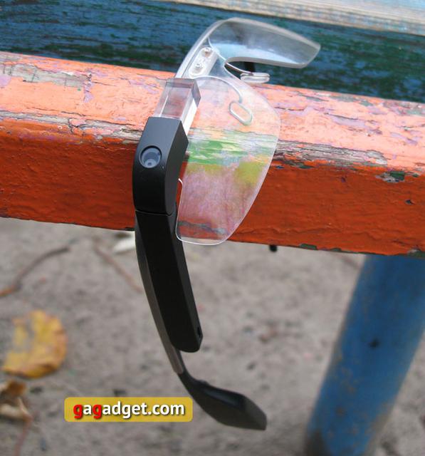 Поскольку все это поместилось с правой стороны, резонным будет вопрос: а нет ли перекоса? Отвечаем: нет. Есть определенное ощущение, что одна часть тяжелее другой, но в целом все нормально. Вообще, Google Glass на редкость легкие, 43 грамма. Я не ношу очков, но если приходится надевать, например, солнцезащитные, у меня очень быстро начинает болеть переносица (слабая она у меня, тяжести не выдерживает), с Google Glass же такого не было.
