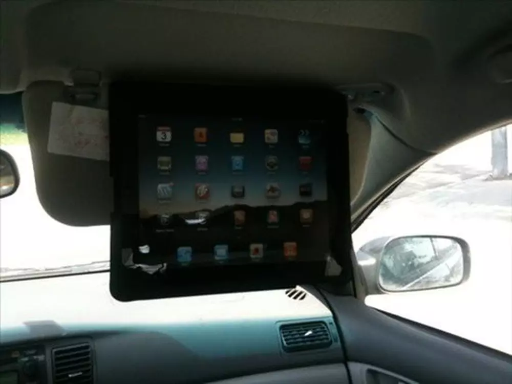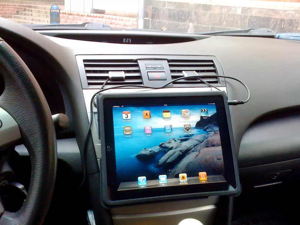 После придания нужной формы штанге возник вопрос куда крепить-то. Если на стекло — закроет огромную площадь, как это было на упомянтом выше тесте. Ниже — перекрывается магнитола. Ей и пожертвовал, рассудив, что iPad, подключенный AUX-кабелем мне магнитолу и заменит.