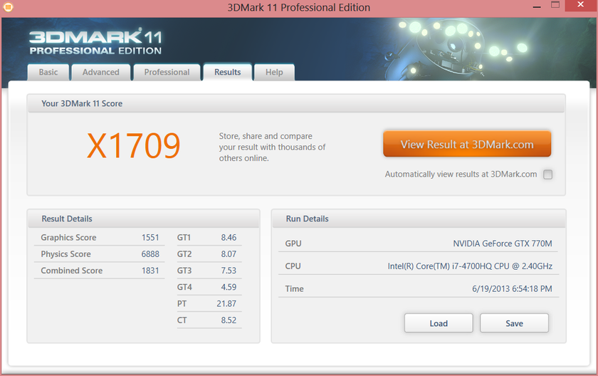 Ну и главное — графическая производительность. 3DMark 11 в режиме Performance поставил ноутбуку достойные 5104 балла, в экстремальном режиме — 1709. Мы попробовали поиграть на нем в новый Tomb Rider и Far Cry 3: при разрешении 1920x1080 точек и максимальных настройках в первой игре фиксировалось 39-41 FPS, результат второй игры был несколько хуже, периодически уровень FPS опускался до 19.