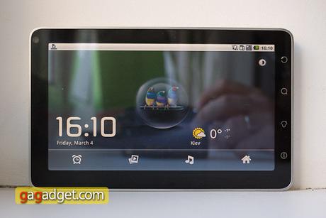 Небольшое разрешение экрана, на мой взгляд, является серьёзным минусом устройства - это серьёзно ухудшает читаемость мелких шрифтов на веб-страницах, да и в целом от такого крупного экрана хотелось бы большего. Кроме того, углы обзора, особенно по вертикали (в ландшафтном положении) у ViewPad 7 существенно хуже, чем у Galaxy Tab. А вот звук мне понравился: во-первых, планшет оснащён двумя громкими динамиками, забранными металлической сеткой; в отличие от Galaxy Tab, оба динамика одновременно не перекрываются практически никогда. Во-вторых, выход на наушники во ViewPad 7 отличается отличным запасом по громкости и, субъективно, очень хорошим качеством. Лично мне слушать музыку на планшете ViewSonic очень понравилось.