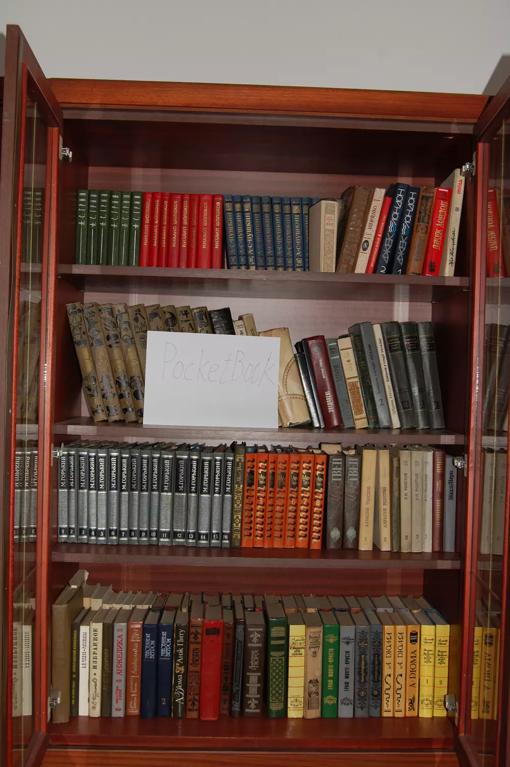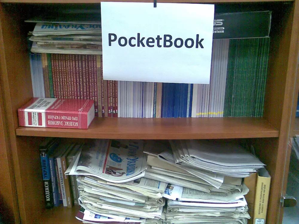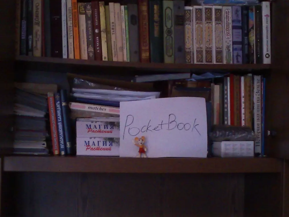 Для участия в конкурсе нужно загрузить фотографию собственной библиотеки в формате JPG. Чтобы обеспечить равные условия для всех участников и избежать мошенничества, на снимке должен быть помимо книг лист бумаги с написанным на нем словом "PocketBook". Нет, вставить текст в фотошопе — это не то же самое. Пример снимка есть на фото ниже. Администрация сайта оставляет за собой право отклонять поданные на конкурс работы без вступления в длительную переписку с объяснением причин. Конкурс проходит с 13 по 26 февраля (включительно). Призовой фонд составляет три Android-ридера PocketBook A7. Победители будут выбраны в результате жеребьевки (случайным образом). Результаты будут опубликованы на сайте не позднее 1 марта. От одного участника принимается только одна работа. К участию в конкурсе, традиционно, допускаются только жители Украины и не допускаются те, кто так или иначе связан с нашим сайтом и компанией Magnet.