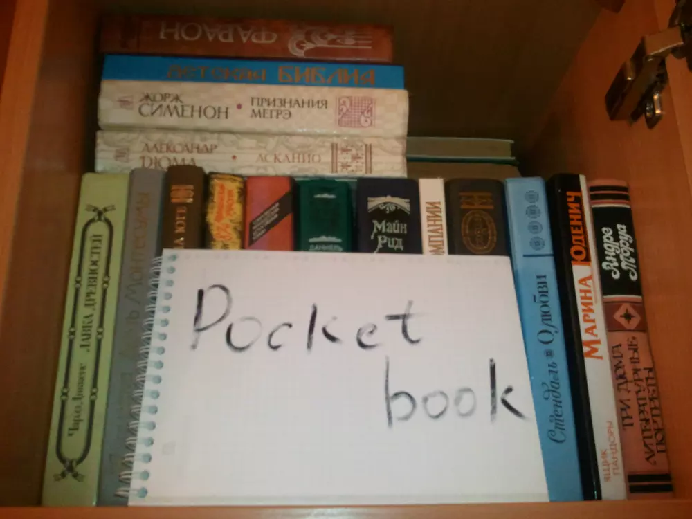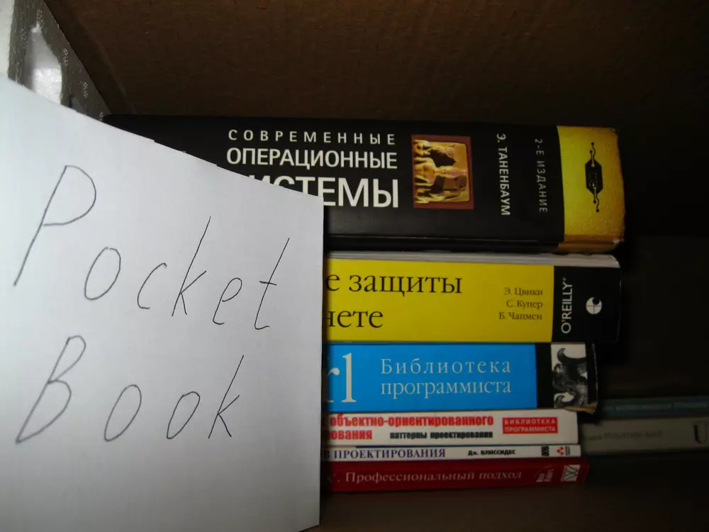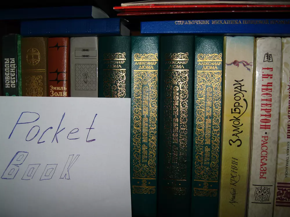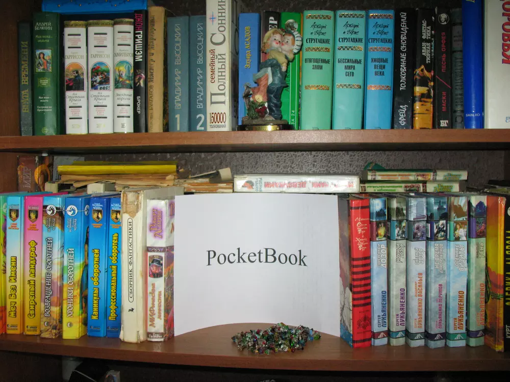 Для участия в конкурсе нужно загрузить фотографию собственной библиотеки в формате JPG. Чтобы обеспечить равные условия для всех участников и избежать мошенничества, на снимке должен быть помимо книг лист бумаги с написанным на нем словом "PocketBook". Нет, вставить текст в фотошопе — это не то же самое. Пример снимка есть на фото ниже. Администрация сайта оставляет за собой право отклонять поданные на конкурс работы без вступления в длительную переписку с объяснением причин. Конкурс проходит с 13 по 26 февраля (включительно). Призовой фонд составляет три Android-ридера PocketBook A7. Победители будут выбраны в результате жеребьевки (случайным образом). Результаты будут опубликованы на сайте не позднее 1 марта. От одного участника принимается только одна работа. К участию в конкурсе, традиционно, допускаются только жители Украины и не допускаются те, кто так или иначе связан с нашим сайтом и компанией Magnet.