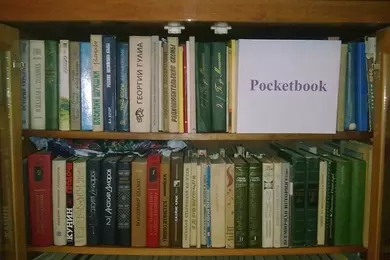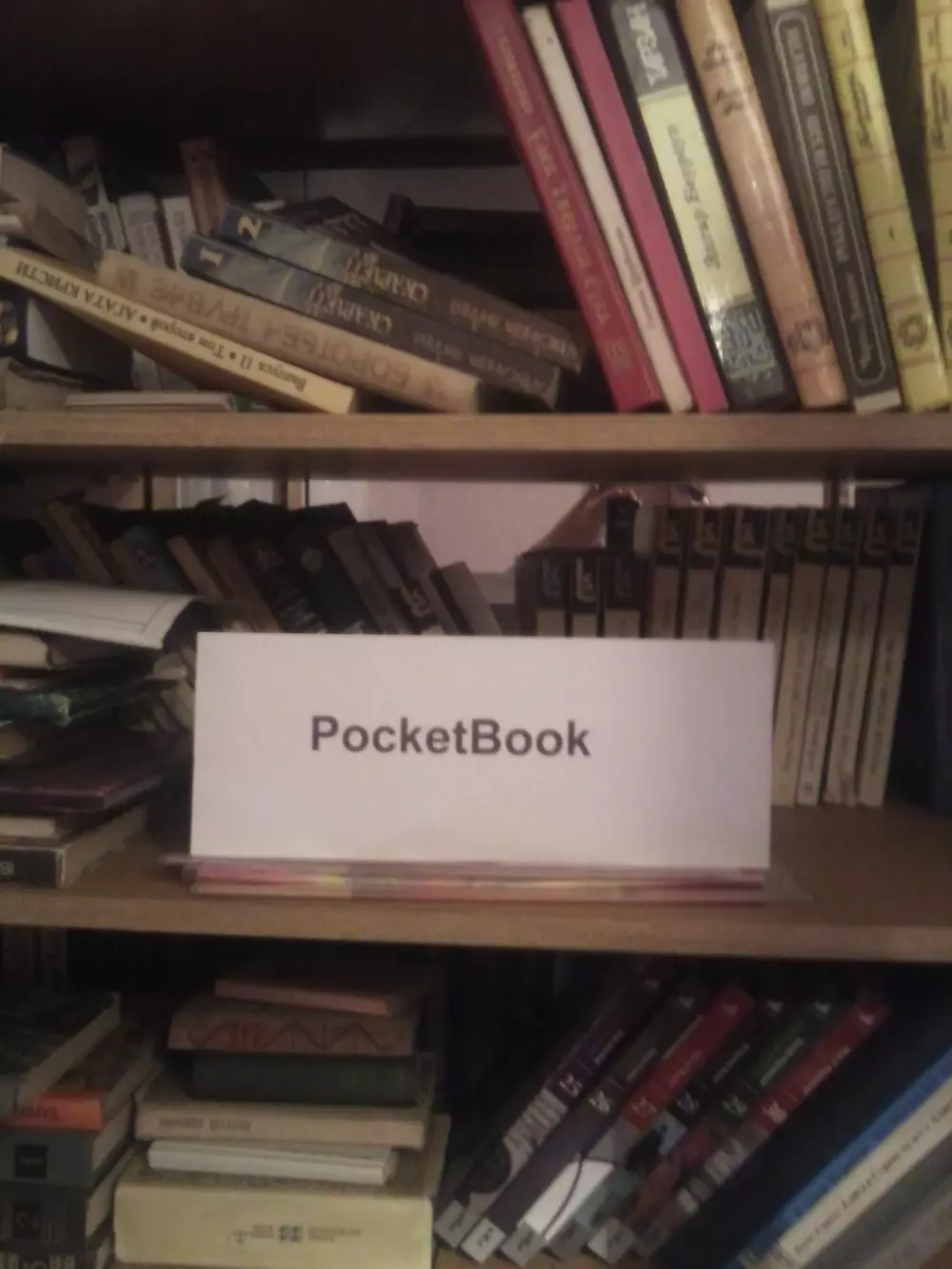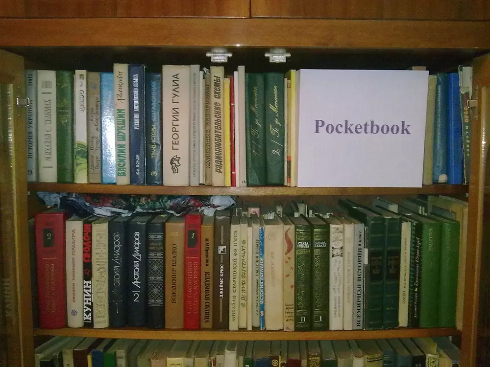 Для участия в конкурсе нужно загрузить фотографию собственной библиотеки в формате JPG. Чтобы обеспечить равные условия для всех участников и избежать мошенничества, на снимке должен быть помимо книг лист бумаги с написанным на нем словом "PocketBook". Нет, вставить текст в фотошопе — это не то же самое. Пример снимка есть на фото ниже. Администрация сайта оставляет за собой право отклонять поданные на конкурс работы без вступления в длительную переписку с объяснением причин. Конкурс проходит с 13 по 26 февраля (включительно). Призовой фонд составляет три Android-ридера PocketBook A7. Победители будут выбраны в результате жеребьевки (случайным образом). Результаты будут опубликованы на сайте не позднее 1 марта. От одного участника принимается только одна работа. К участию в конкурсе, традиционно, допускаются только жители Украины и не допускаются те, кто так или иначе связан с нашим сайтом и компанией Magnet.