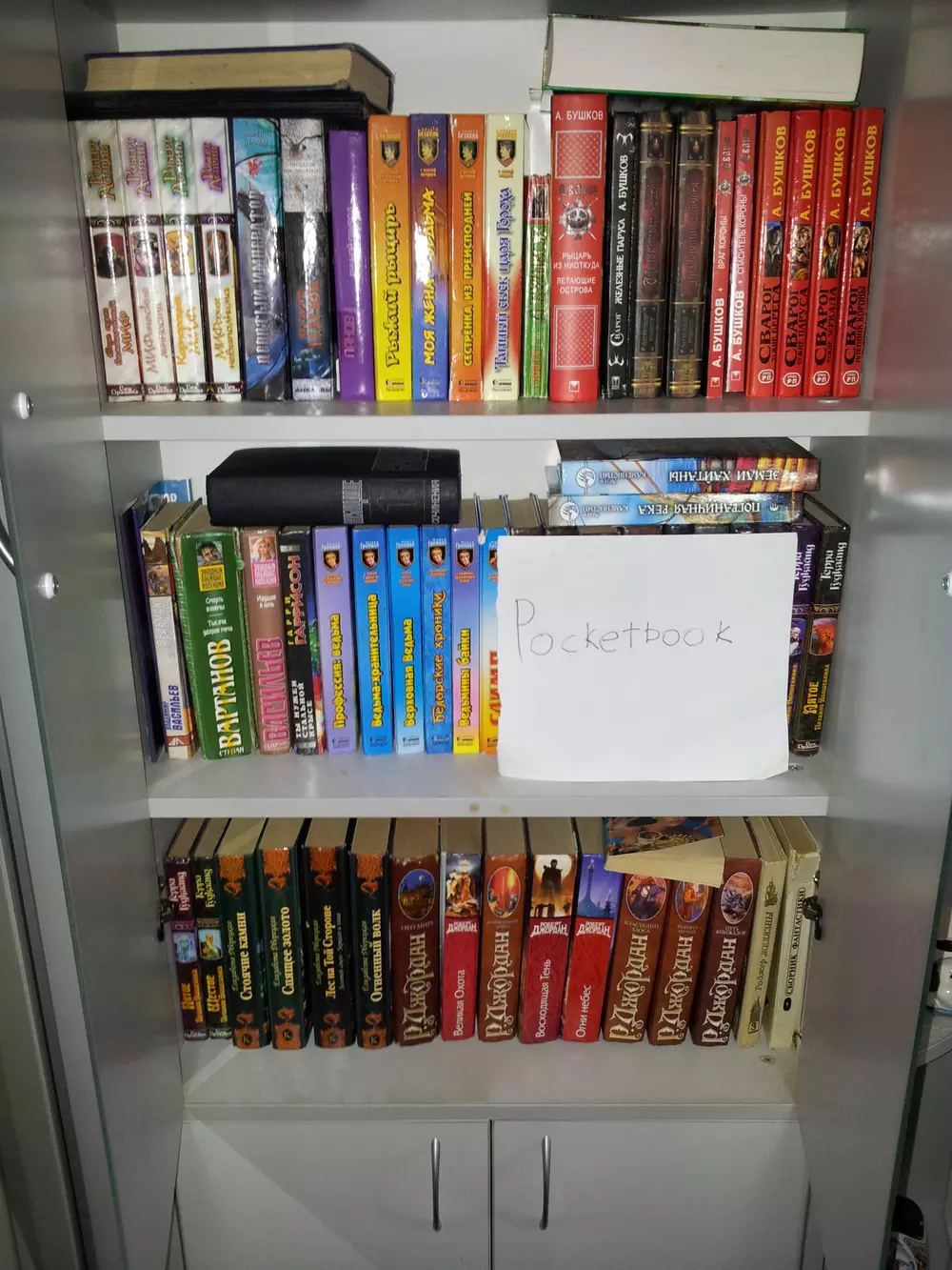 Для участия в конкурсе нужно загрузить фотографию собственной библиотеки в формате JPG. Чтобы обеспечить равные условия для всех участников и избежать мошенничества, на снимке должен быть помимо книг лист с текстом PocketBook. Нет, вставить текст в фотошопе это не то же самое. Пример снимка есть на фото ниже. Администрация сайта оставляет за собой право отклонять поданные на конкурс работы без вступления в длительную переписку с объяснением причин. Конкурс проходит с 13 по 26 февраля (включительно). Призовой фонд составляет три Android-ридера PocketBook A7. Победители будут выбраны в результате жеребьевки (случайным образом). Результаты будут опубликованы на сайте не позднее 1 марта. От одного участника принимается только одна работа.
