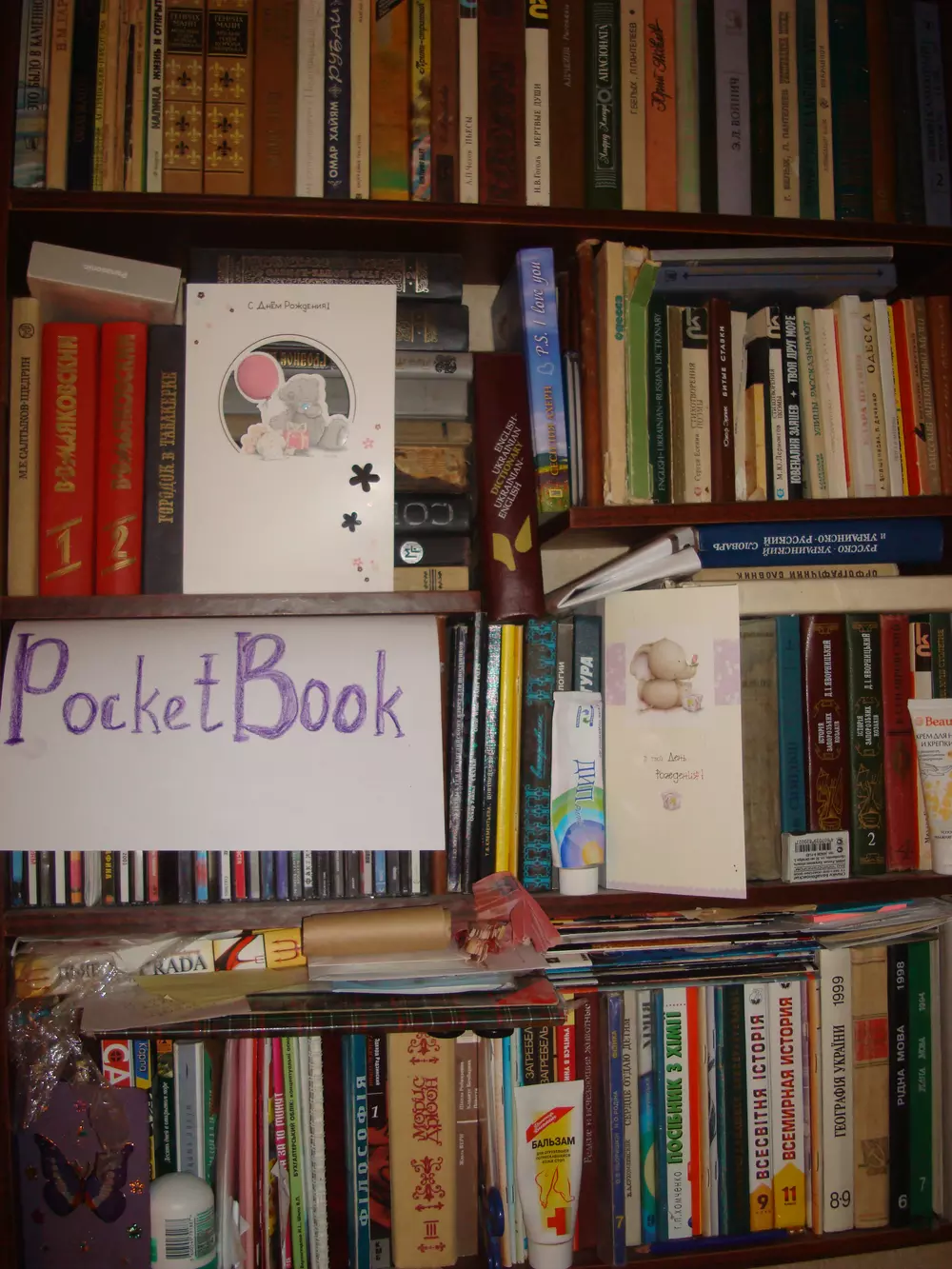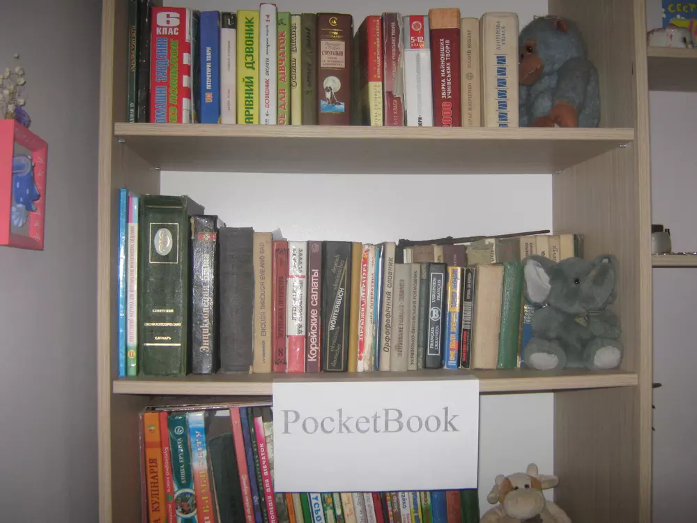 Для участия в конкурсе нужно загрузить фотографию собственной библиотеки в формате JPG. Чтобы обеспечить равные условия для всех участников и избежать мошенничества, на снимке должен быть помимо книг лист бумаги с написанным на нем словом "PocketBook". Нет, вставить текст в фотошопе — это не то же самое. Пример снимка есть на фото ниже. Администрация сайта оставляет за собой право отклонять поданные на конкурс работы без вступления в длительную переписку с объяснением причин. Конкурс проходит с 13 по 26 февраля (включительно). Призовой фонд составляет три Android-ридера PocketBook A7. Победители будут выбраны в результате жеребьевки (случайным образом). Результаты будут опубликованы на сайте не позднее 1 марта. От одного участника принимается только одна работа. К участию в конкурсе, традиционно, допускаются только жители Украины и не допускаются те, кто так или иначе связан с нашим сайтом и компанией Magnet.