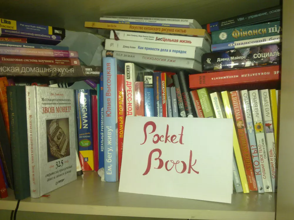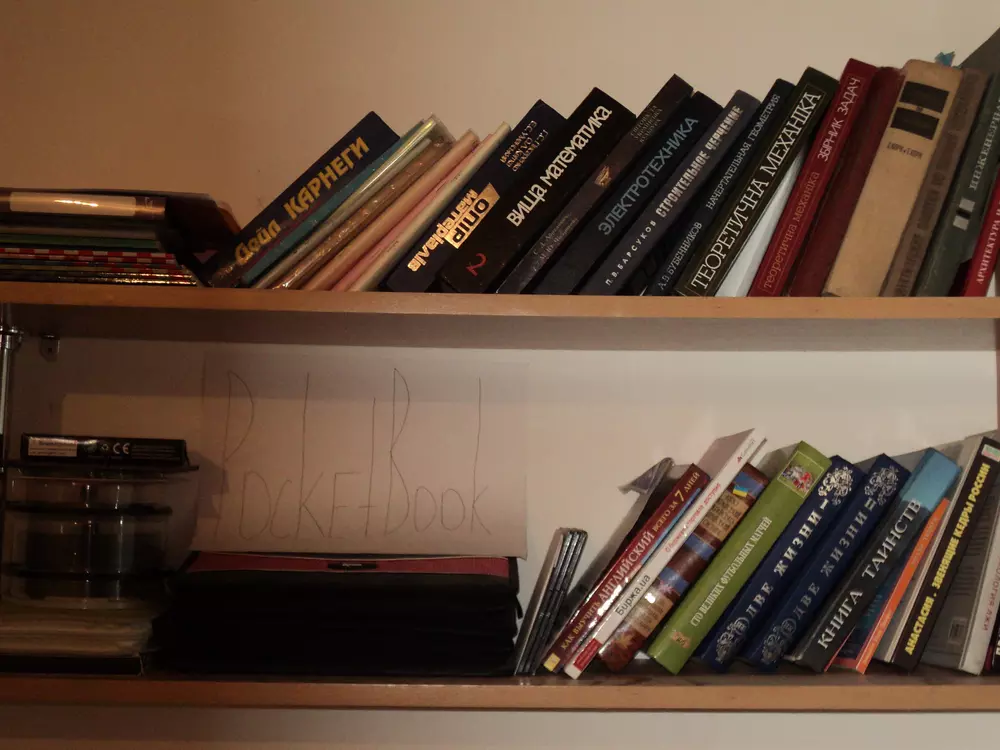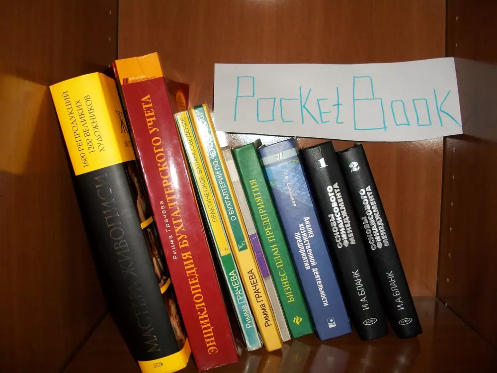 Для участия в конкурсе нужно загрузить фотографию собственной библиотеки в формате JPG. Чтобы обеспечить равные условия для всех участников и избежать мошенничества, на снимке должен быть помимо книг лист бумаги с написанным на нем словом "PocketBook". Нет, вставить текст в фотошопе — это не то же самое. Пример снимка есть на фото ниже. Администрация сайта оставляет за собой право отклонять поданные на конкурс работы без вступления в длительную переписку с объяснением причин. Конкурс проходит с 13 по 26 февраля (включительно). Призовой фонд составляет три Android-ридера PocketBook A7. Победители будут выбраны в результате жеребьевки (случайным образом). Результаты будут опубликованы на сайте не позднее 1 марта. От одного участника принимается только одна работа. К участию в конкурсе, традиционно, допускаются только жители Украины и не допускаются те, кто так или иначе связан с нашим сайтом и компанией Magnet.