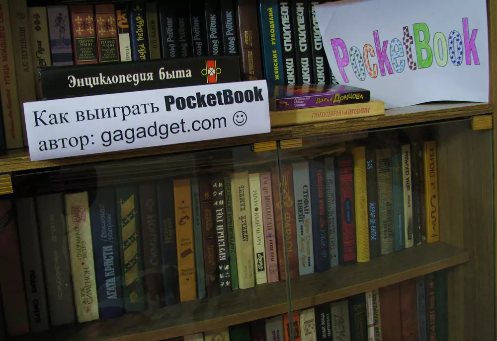 Для участия в конкурсе нужно загрузить фотографию собственной библиотеки в формате JPG. Чтобы обеспечить равные условия для всех участников и избежать мошенничества, на снимке должен быть помимо книг лист бумаги с написанным на нем словом "PocketBook". Нет, вставить текст в фотошопе — это не то же самое. Пример снимка есть на фото ниже. Администрация сайта оставляет за собой право отклонять поданные на конкурс работы без вступления в длительную переписку с объяснением причин. Конкурс проходит с 13 по 26 февраля (включительно). Призовой фонд составляет три Android-ридера PocketBook A7. Победители будут выбраны в результате жеребьевки (случайным образом). Результаты будут опубликованы на сайте не позднее 1 марта. От одного участника принимается только одна работа. К участию в конкурсе, традиционно, допускаются только жители Украины и не допускаются те, кто так или иначе связан с нашим сайтом и компанией Magnet.