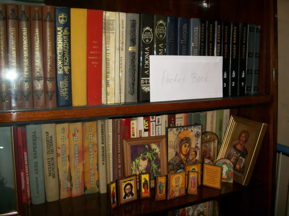 Небольшое количество книг потому, что вся литература осталась дома у родителей.